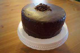 Sahne erhitzen, Schokolade und Kokosfett zerkleinern und in die Sahne geben zum Schmelzen. Abkühlen lassen. Kuchen damit überziehen. Den Kuchen für nochmal 1 Stunde kaltstellen. |