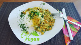 150g frische Champignons 2 EL Kokos-Öl 1 Dose (425 g) Kichererbsen 400ml cremige Kokosmilch 2 EL Currypulver 1 TL Koriander 1 TL Kurkuma Chilipulver Salz Pfeffer