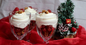 1 Glas Schattenmorellen (abgetropft) 50g Lebkuchen 200g Mascarpone 500g Magerquark 100g Zucker 1 Pr. Zimt 1 Pr. Lebkuchengewürz | Den Lebkuchen in kleine Würfel schneiden. Mascarpone, Quark, Zucker, Zimt und Lebkuchengewürz mit dem Mixer kurz verrühren. Die Lebkuchenwürfel auf die Schälchen verteilen, Kirschen darauf geben und auf die Kirschen die Creme verteilen. Zum Schluss etwas Zimt auf die Creme stäuben, ein oder zwei Kirschen auf Creme legen und mit kleinen Lebkuchenwürfeln dekorieren. | ||