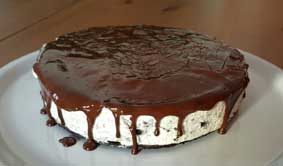 Die Zutaten für den Schokoguss über einem Wasserbad schmelzen, etwas abkühlen lassen und dann zügig über dem kalten Kuchen verteilen, nochmal für ca. 20 Min. kaltstellen. |