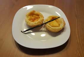 Mehl mit der Milch (55g) in einer kleinen Schüssel glattrühren. Milch (130g), Sahne, Vanilleextrakt und Zucker in einen Topf geben und langsam erwärmen (es darf nicht kochen) nun das Mehlgemisch dazu geben und gut miteinander verrühren. Jetzt den Topf vom Herd nehmen und unterrühren abkühlen lassen. Sobald es Handwarm ist, die Eigelbe unterrühren. Nun die Masse in die Blätterteig-Mulden gleichmäßig verteilen. Jetzt ca. 20 Min. auf mittlerer Schiene backen.