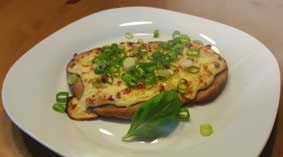 auf 250°C Ober-/Unterhitze vorheizen. Zwiebel schälen und in feinste Würfel schneiden, mit dem Schmand, Schmelzkäse, geriebenem Käse und den Speckwürfeln mischen, würzen, zum Schluss Ei unterrühren (kein Rührgerät verwenden, die Masse wird sonst zu flüssig!). Brotteig mit der Hand nochmals durchkneten, achteln, jedes Achtel so dünn wie möglich zu Fladen ausrollen. Falls nötig, noch etwas Mehl dazu verwenden. Ausgerollte Teigfladen dünn mit etwas Öl bestreichen, diese Fladen 2-3 Minuten vorbacken (unterste Schiene). Dann den Belag aufstreichen und ca. 10 Minuten – nach Sicht - fertig backen. Lauchzwiebel putzen, in Ringe schneiden, Fladen damit bestreuen. |