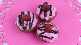 Schoko-Cupcakes mit Frischkäse-Topping, Himbeere u. Schokosoße - Rezept als PDF | |
