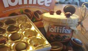 200g gefrorene Toffifee (24 Stück) | Die gefrorene (damit man sie besser zerkleinern kann) Toffifee zerkleinern bzw. klein mahlen und anschließend in einen Topf geben. Butter und Sahne hinzugeben und bei kleiner Hitze unter ständigem rühren schmelzen lassen, wenn alles verschmolzen ist und sich schön miteinander verbunden hat, in ein Schraubglas füllen, abkühlen lassen und genießen. Wer es verschenken möchte, befestigt noch ein schönes Toffifee-Etikett am Glas. |