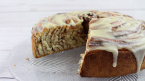 450g Mehl 1 P. Vanillepuddingpulver 1 P. Trockenhefe 160g Zucker 110g Butter 300g Milch 1 Prise Salz 3 TL Zimt Frischkäseguss: 30g Butter 110g Frischkäse 70g Puderzucker 10g Vanillezucker | Den Backofen auf 180°C Umluft (200°C Ober-/Unterhitze) vorheizen. Mehl, Puddingpulver, Hefe, 60 g Zucker, 50 g Butter, Milch und Salz in die Küchenmaschine geben und 5 Min. kneten. Teig zu einer Kugel formen und abgedeckt an einem warmen Ort 1 Stunde gehen lassen. Eine 26 cm Springform mit Backpapier auslegen und den Rand einfetten. 100 g Zucker und den Zimt vermischen und zur Seite stellen. 60 g Butter in der Mikrowelle oder in einem kl. Topf schmelzen lassen. Teig einmal von Hand durchkneten und zu einem Rechteck (60 x 25 cm) ausrollen, mit der geschmolzenen Butter bestreichen und mit der Zucker-Zimt-Mischung bestreuen. Rechteck in 12 Streifen (5 x 25 cm) schneiden. Ersten Streifen zu einer Spirale aufrollen und in die Mitte der Backform legen. Weitere 11 Teigstreifen nacheinander um die Spirale wickeln, sodass eine große Schnecke entsteht. Fertige Schnecke mit einem Küchentuch abdecken und nochmal ca. 30 Minuten gehen lassen. Zimtschnecke 25 Minuten goldbraun backen, nach 15 Minuten mit Backpapier abdecken. Zubereitung Frischkäseguss: Butter, Frischkäse, Puderzucker und Vanillezucker in einem Topf auf ganz niedriger Temperatur kurz vermischen bis sich alles gut miteinander verbunden hat. Guss über der Zimtschnecke verteilen, kurz trocknen lassen, Zimtschnecke in 8 Stücke schneiden und frisch servieren. |